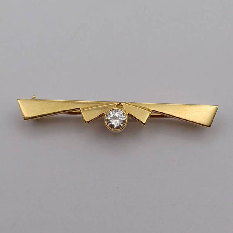 Art deco style 18ct gold diamond set bar brooch, the brilliant cut diamond approx 0.25 carats - 4cm long, 4.3 g