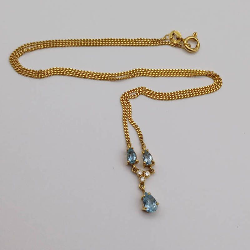 18ct gold diamond & aquamarine set pendant necklace on an 18 carats gold chain by cropp & farr - 4.2 g