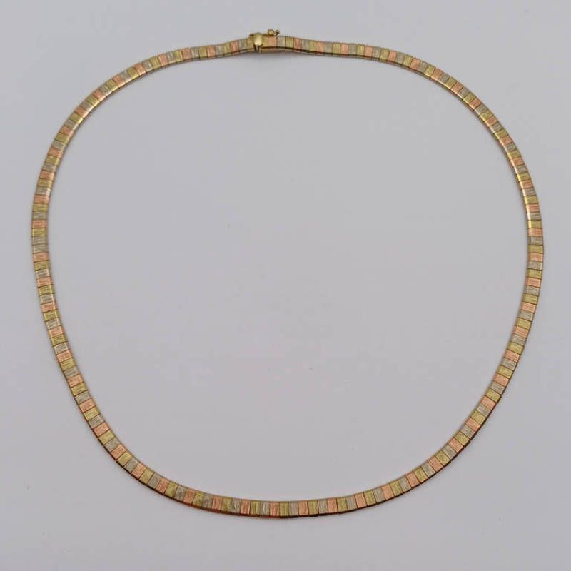 9ct gold 3-tone flat link necklace - 41 cm long, 16.5 g