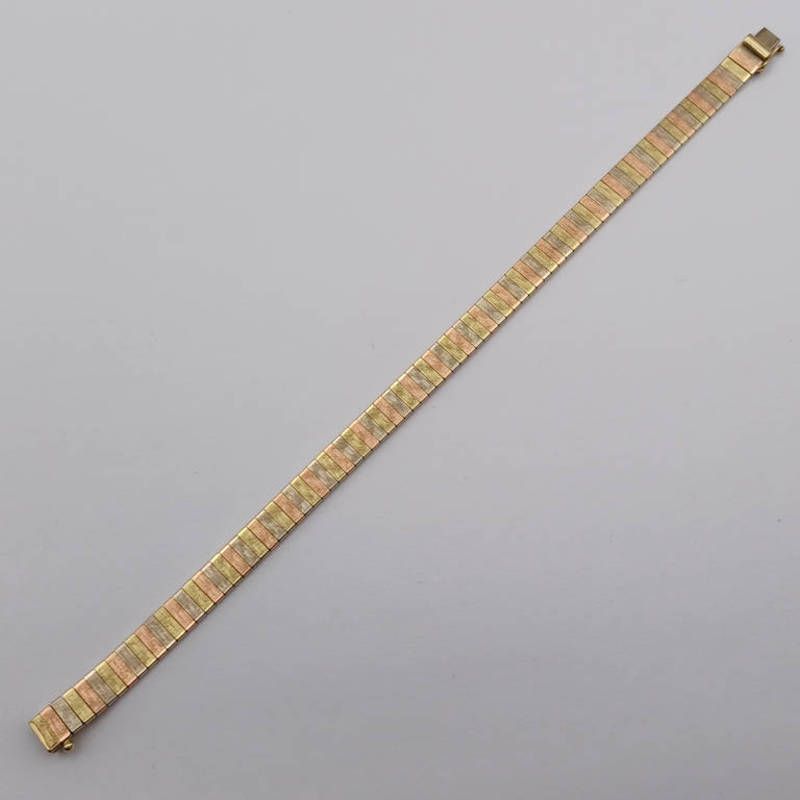 9ct gold 3-tone flat link bracelet - 18.4cm long, 13.0 g