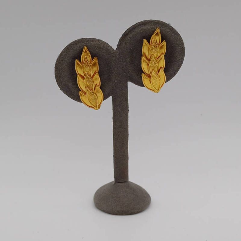 Pair of 22k gold wheat sheaf design earrings - 2.6 cm long, 6.8 g