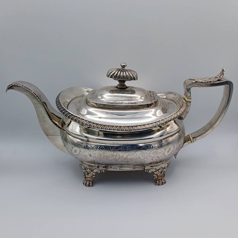 George iii silver teapot with engraved decoration on lions paw feet by william sharp, london 1820 - 800g ivory submission reference - b59sy43u