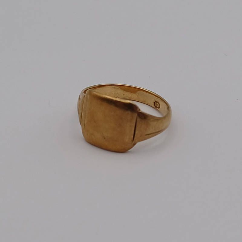 9ct gold signet ring with gold stone panel - 2.9g, ring size g 1/2