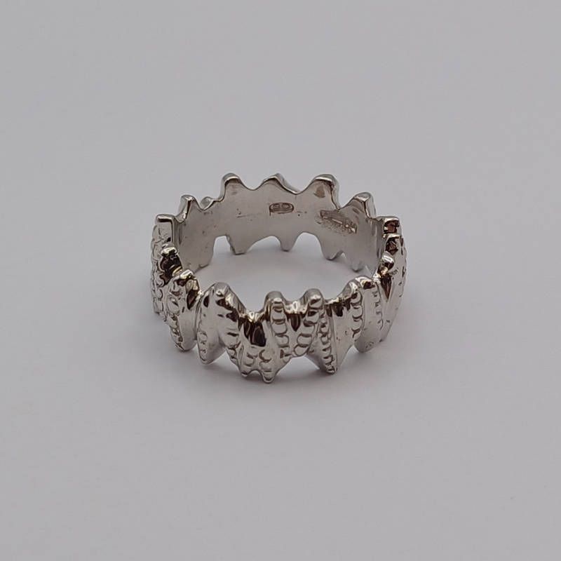 18ct gold decorative wedding band by stuart devlin, london 1979, ring size o 1/2, 9.9g