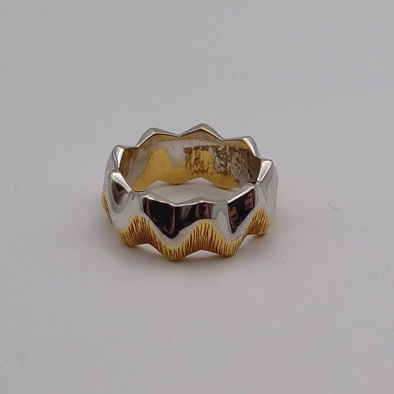 18ct white & textured yellow gold wedding band by stuart devlin, london 1976, ring size q, 15.4g