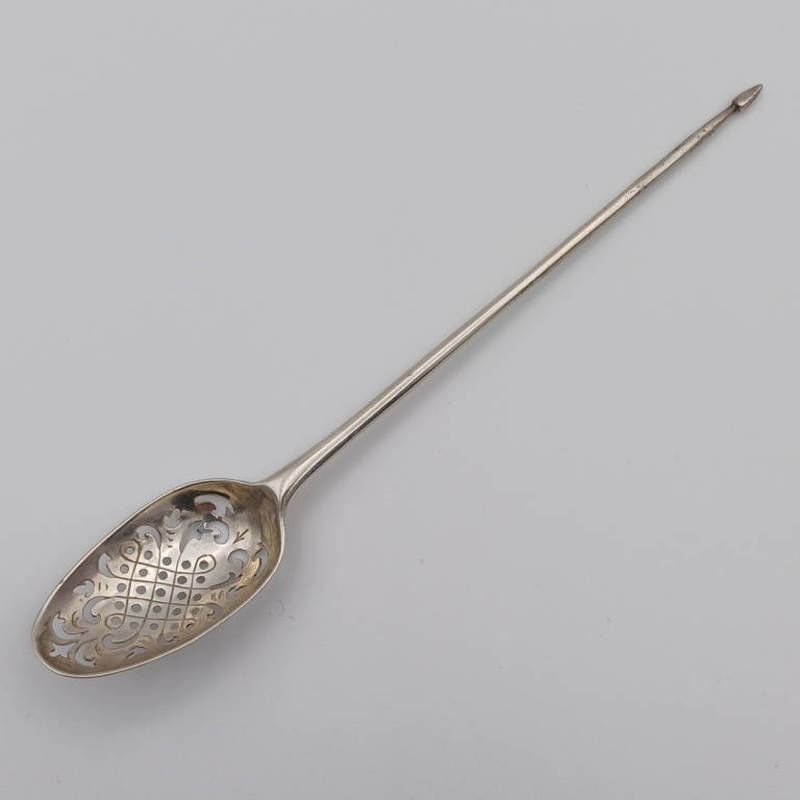 18th century silver mote spoon by henry bailey, london circa 1750, 12.2cm long