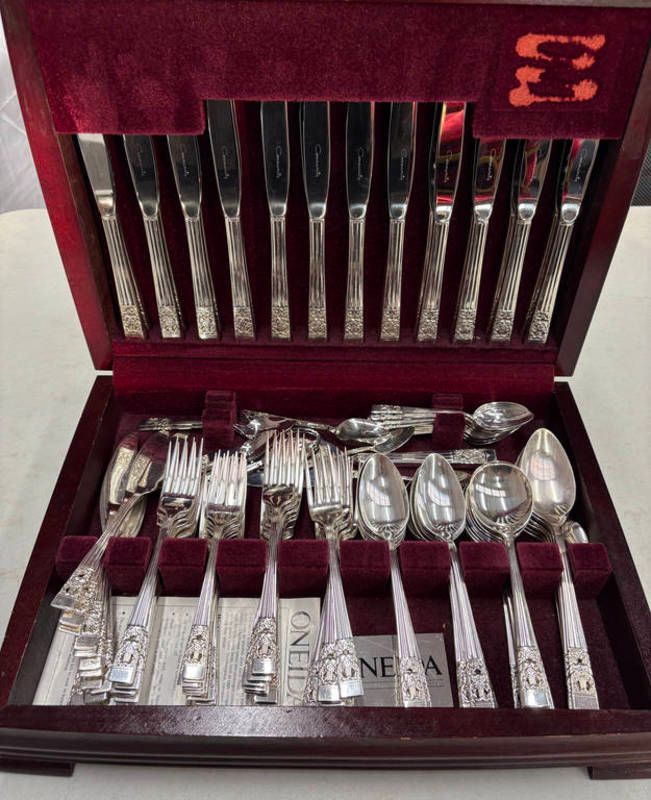 Selection of silver plated ware, etc including 4 piece teaset, silver handled tea knives, canteen...