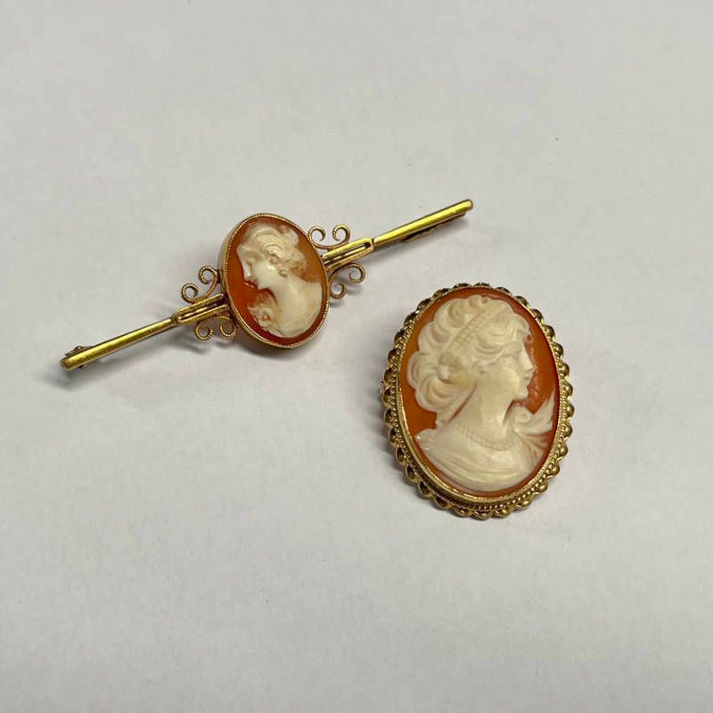 9ct gold oval cameo brooch & 9ct gold cameo bar brooch - 9.5g