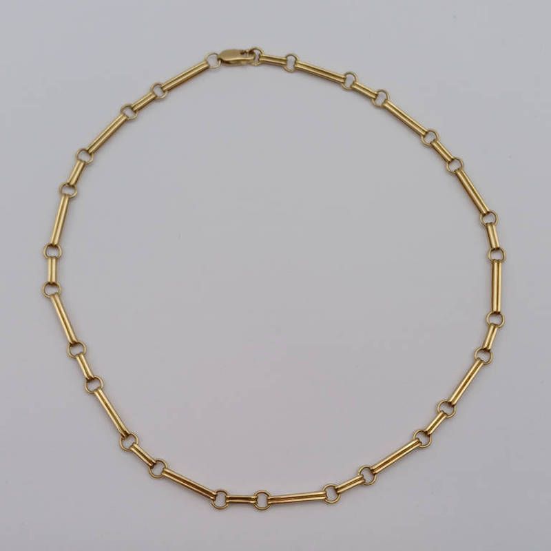 9ct gold fancy long chain necklace - 40cm long, 12.7 g