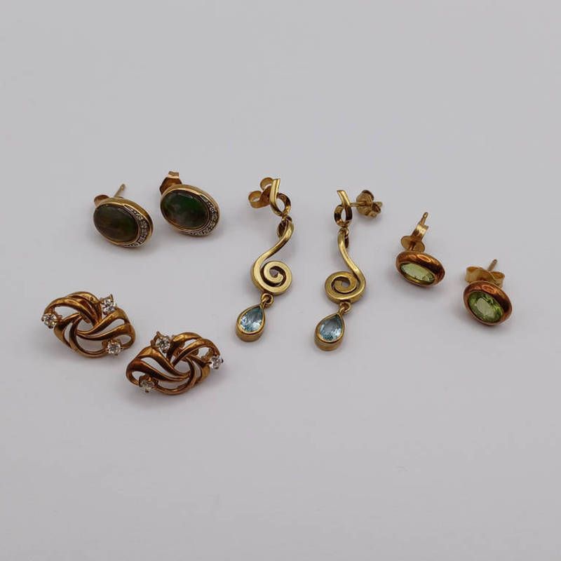 4 pairs of 9ct gold gem set earrings - 10.6 g total