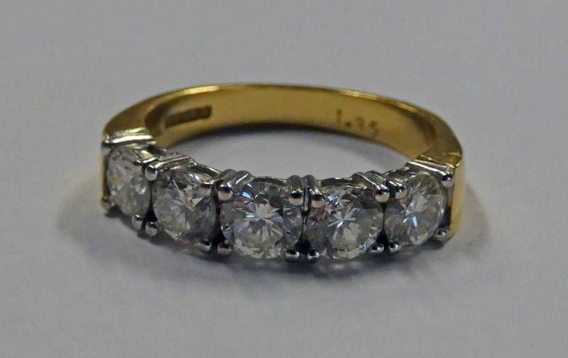 18ct gold 5 stone diamond set ring, the brilliant cut diamonds approx 1.85 carats in total