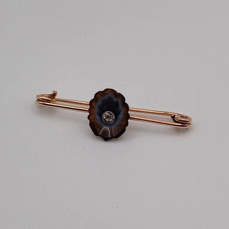 Late 19th century gold carved agate shell & diamond bar brooch - 4.5 cm long, 3.2 g