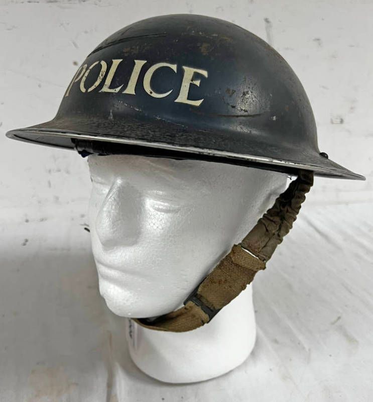 Ww2 british brodie helmet marked police to exterior and stamped bmb 1941 nb to be...