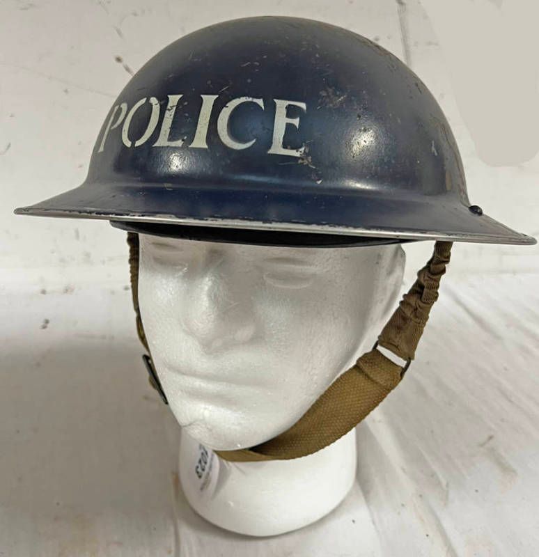 Ww2 brodie helmet marked police to exterior nb to be sold plus vat on the hammer price