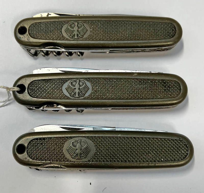 3 german army i.c.a.r folding pocket knives with chequered grips