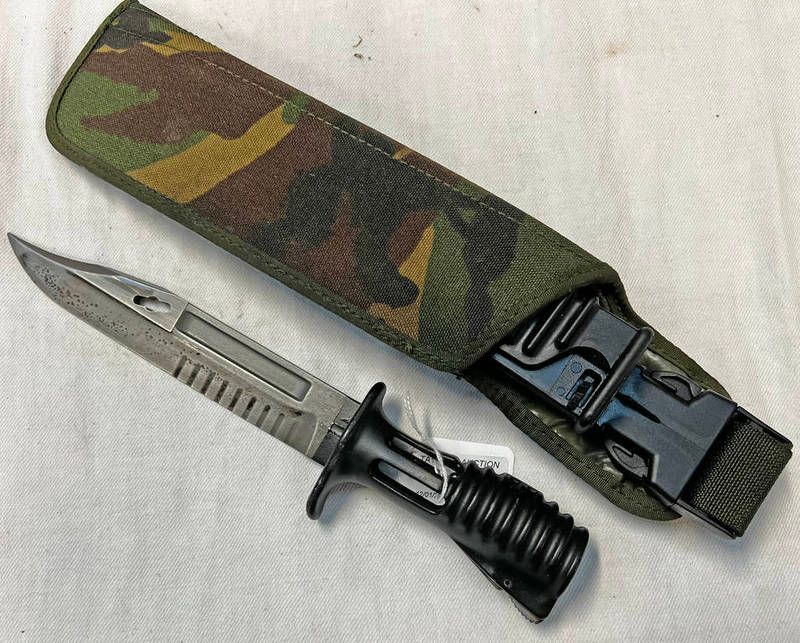 British army l3a1 bayonet with 18cm long clip point blade, characteristic grip with its scabbard