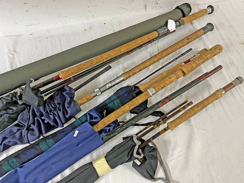 Shakespeare sigma supra 1515-2705 2 piece rod, walker salmon 3 piece rod, daiwa amorphoas whisker osprey-x 3 piece rod & a daiwa alltmor-s 2 piece rod