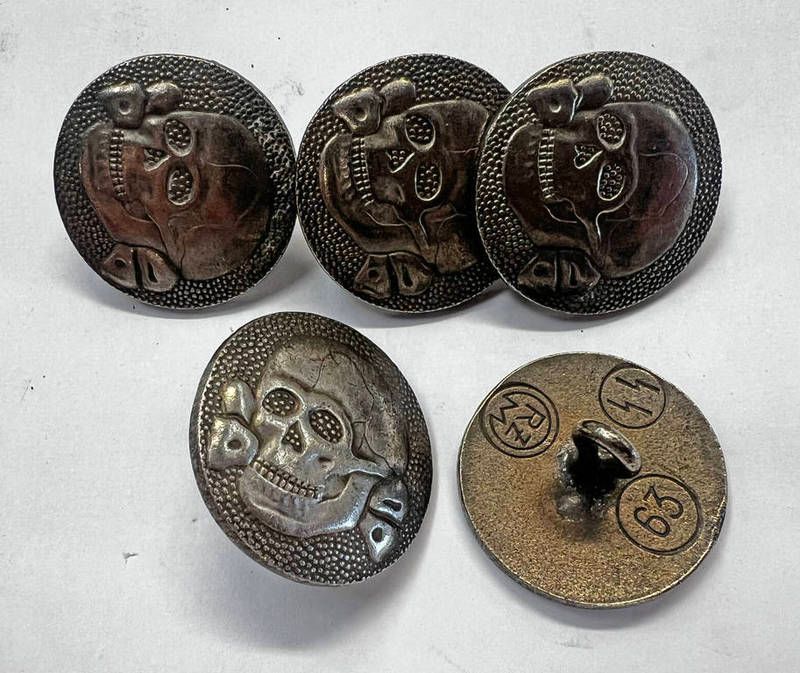 5 ww2 style german style buttons with skull and other markings