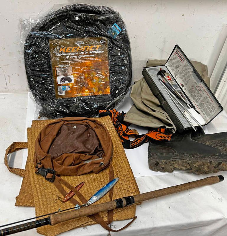 Fishing - abu garcia carbon carp 2 piece rod, keepnet, waders, lures, etc