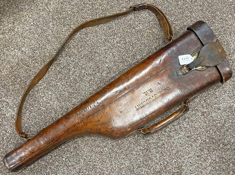 Early 20th century leg of mutton gun case with brass lock, 78.5cm long