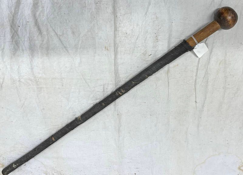 Early 20th century zulu knobkerrie with globular head on wire bound shaft, 83 cm long