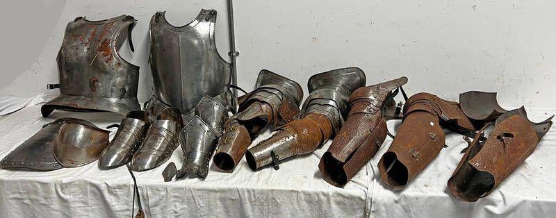 Re-enactment - knights suit of armour with breast & back plate, arms, & gaiters - possibly a matched set
