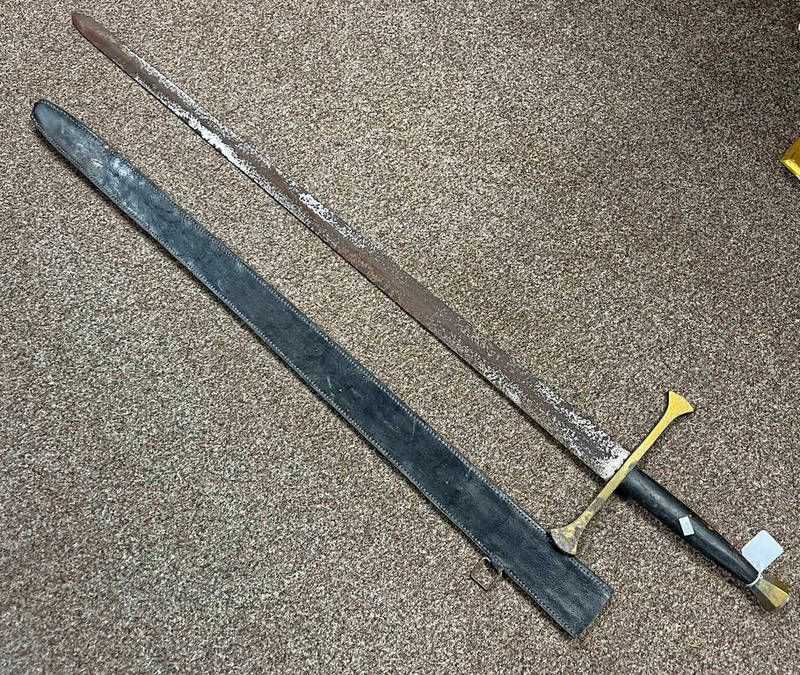 Re-enactment - medieval style knights sword with scabbard, 131cm long overall