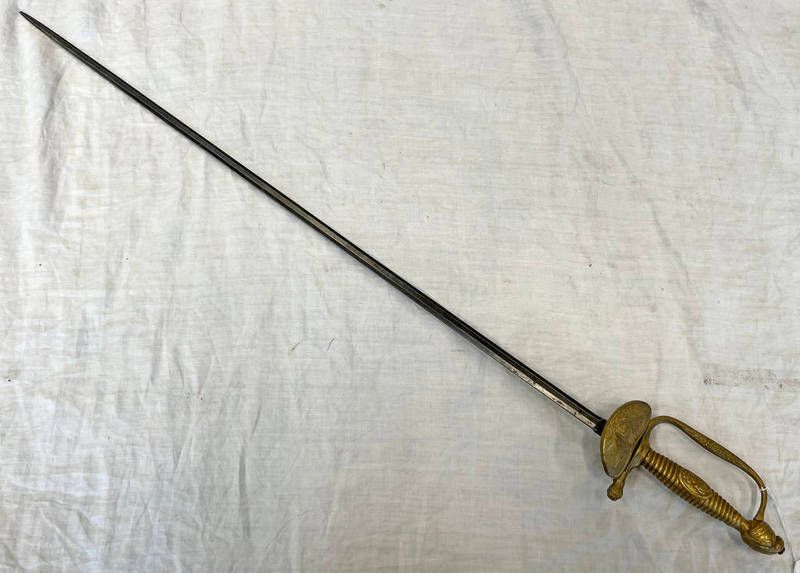 19th century french small sword with 75.5cm long flattened diamond sectioned blade, characteristic hilt with decoration