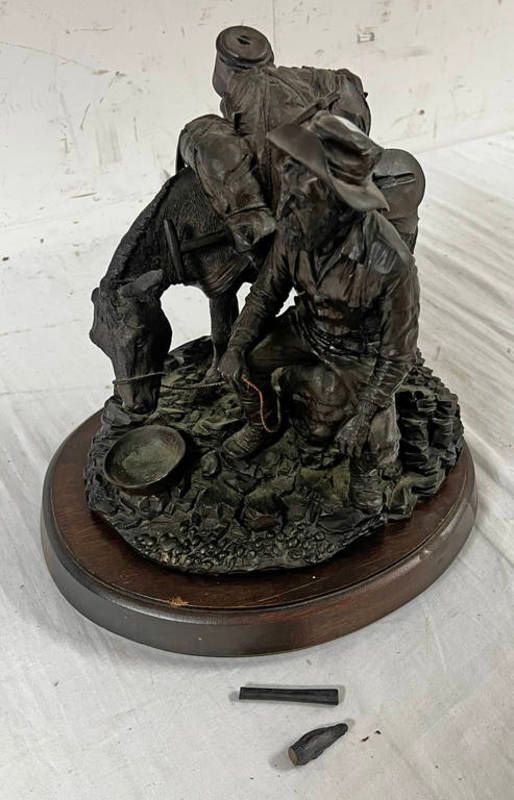 Willia elphick 'the prospector' limited edition bronzed resin sculpture, 176/250, on wooden base (as found)