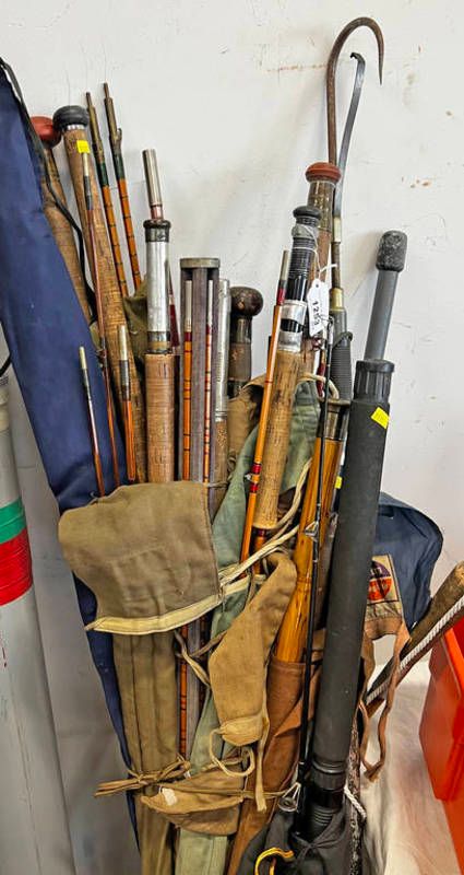 Vintage fly fishing & other rods to include alex martin 4 piece rod (spare tip) in bag, hardy neo cane 2 piece rod in hardy bag, etc