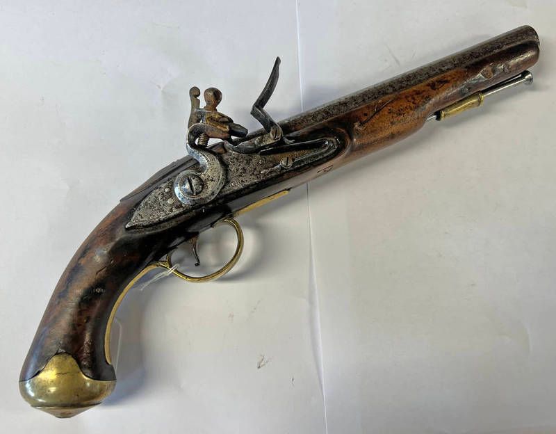 Flintlock light dragoon pistol by ketland & co .650 calibre, 9 inch barrel, border engraved and signed lock with gr below crown, stock engraved pw to underside with brass mounts and steel ramrod