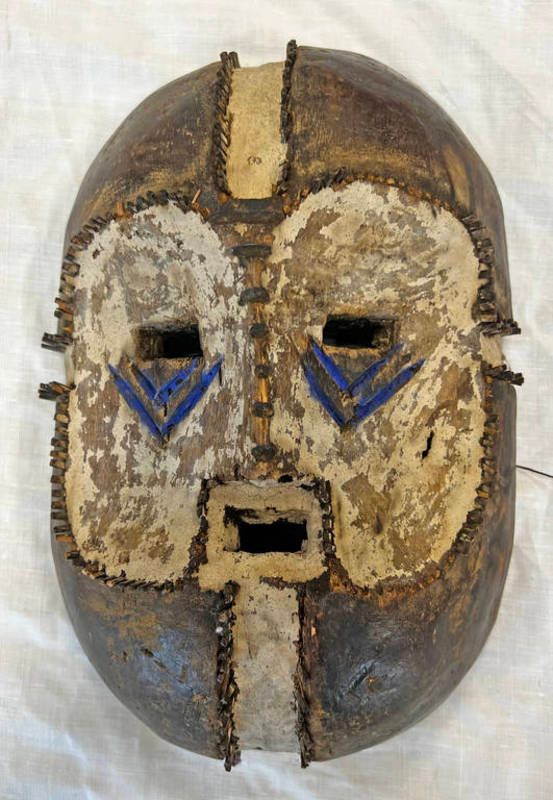 Democratic republic of the congo mask with inset short cane spikes with pigment, 26cm long