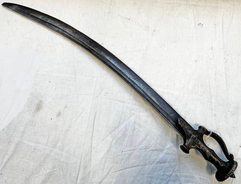 18th/19th century tulwar with 62cm long curved & fullered blade with its characteristic hilt & pommel
