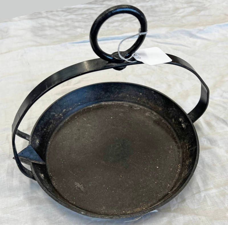 Gypsy pan with spout to body & eyelet to handle, 30cm across