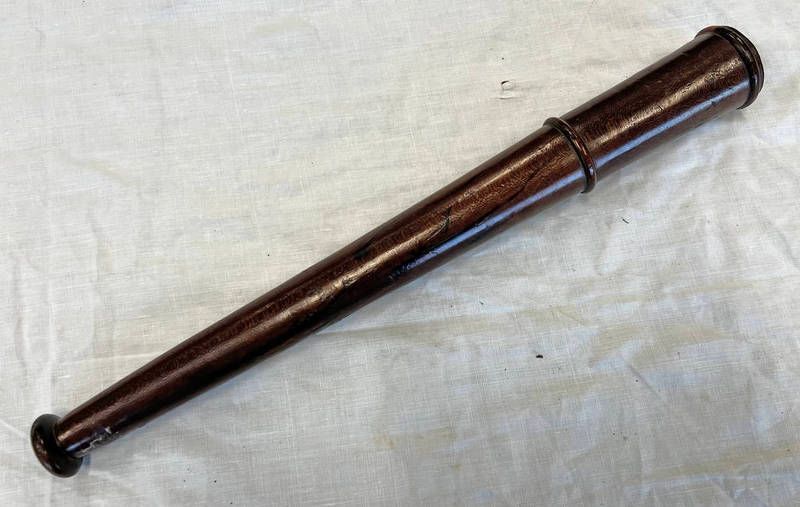 Turned hardwood truncheon with tapered body & shaped pommel, 41.5cm long