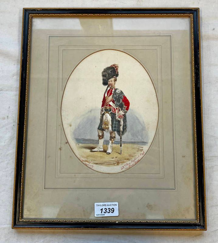 Pickering officer of the 42nd royal highland reg. the black watch signed framed watercolour 21 x 16 cm