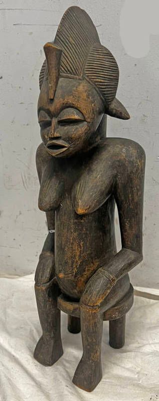 Tribal / ethnic carved wooden figure, seated female form in a seated position, 52cm tall