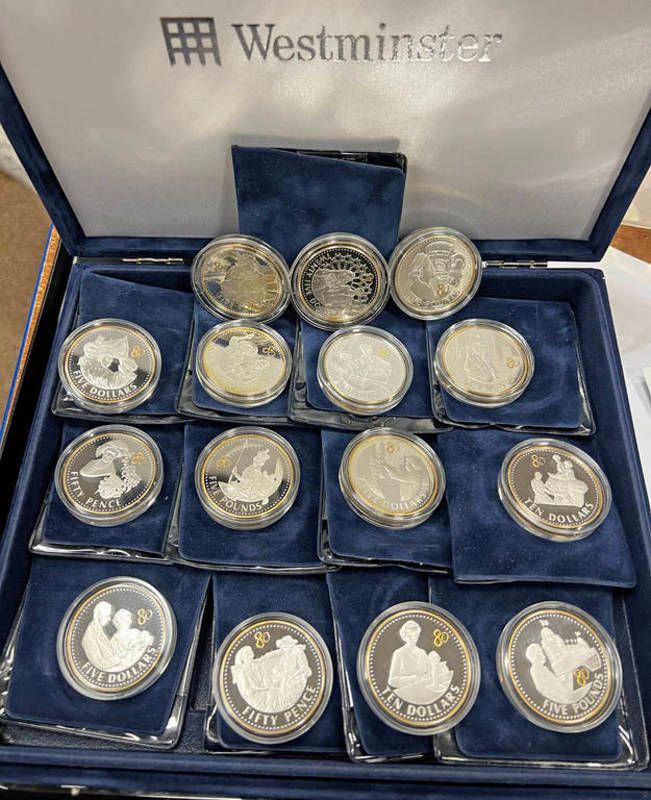 The royal mint queens 80th birthday silver coin collection, 15 coins in total each weighing 28.28g, all with certificates