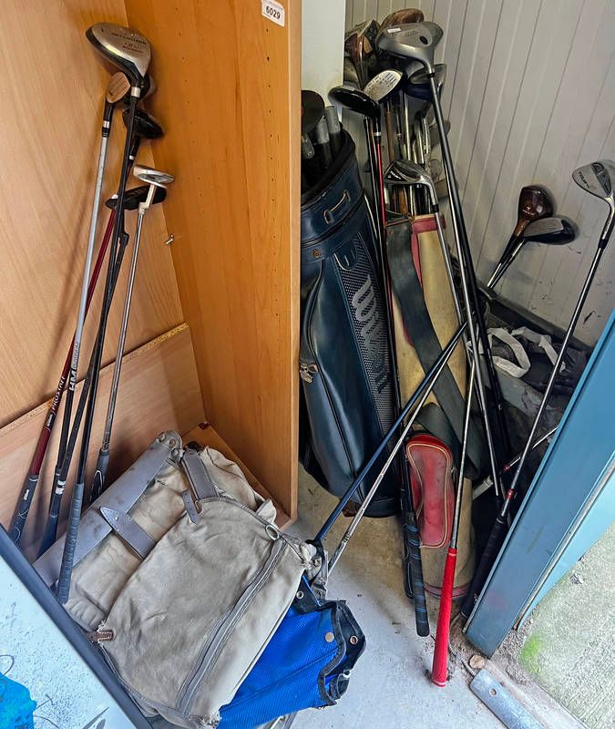Selection of golf clubs to include putters, drivers etc