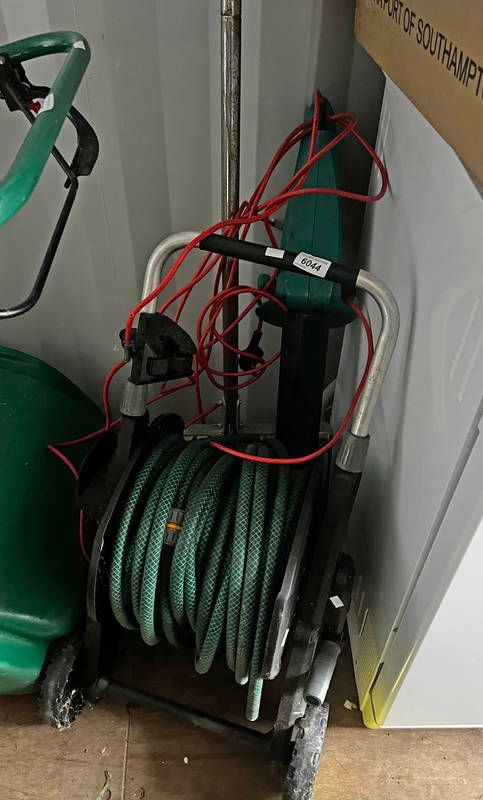 Garden hose, tools, extension cord, tyre inflator etc over one shelf