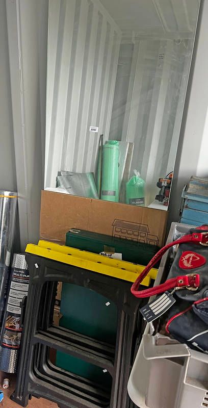 Folding picnic table with seats, mirror and two saw horses