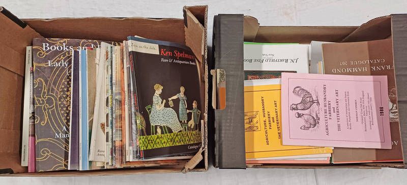 2 boxes of approx 80 rare book catalogues and lists including agriculture, husbandry farriery and the veterinary art by norman comben, central rural matters, numerous ken spelman and maggs bros issues, etc