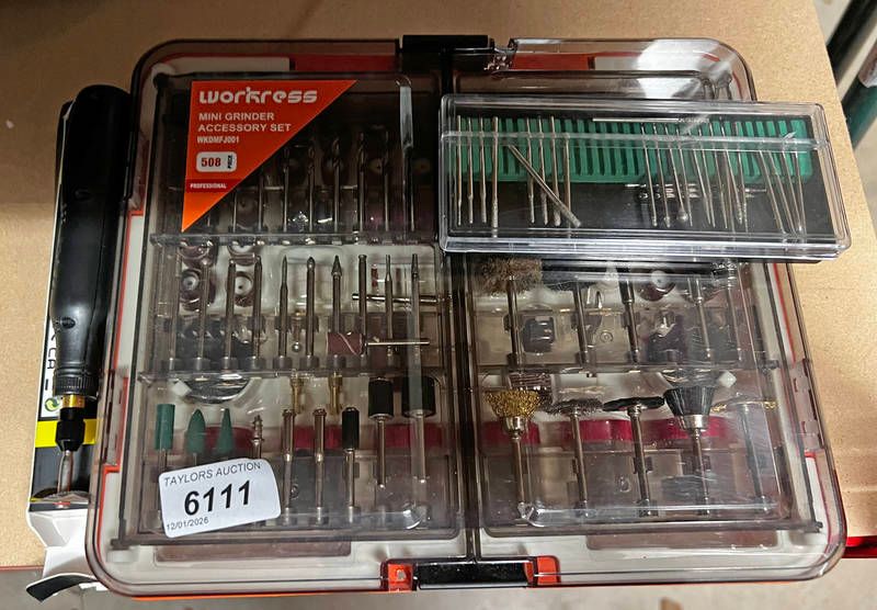 Tools to include drill, tool box with contents, electric hedge trimmer, bowls, etc