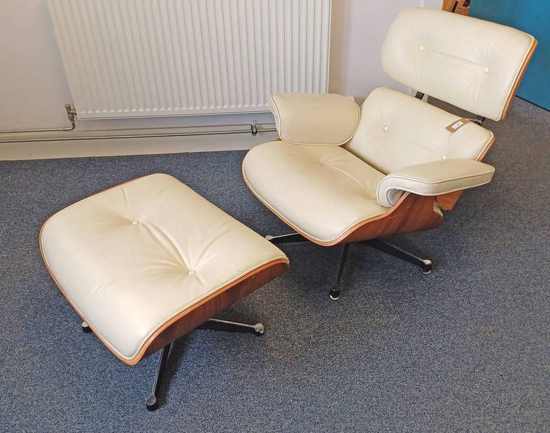 Eames style buttoned cream leather swivel armchair & matching foot stool