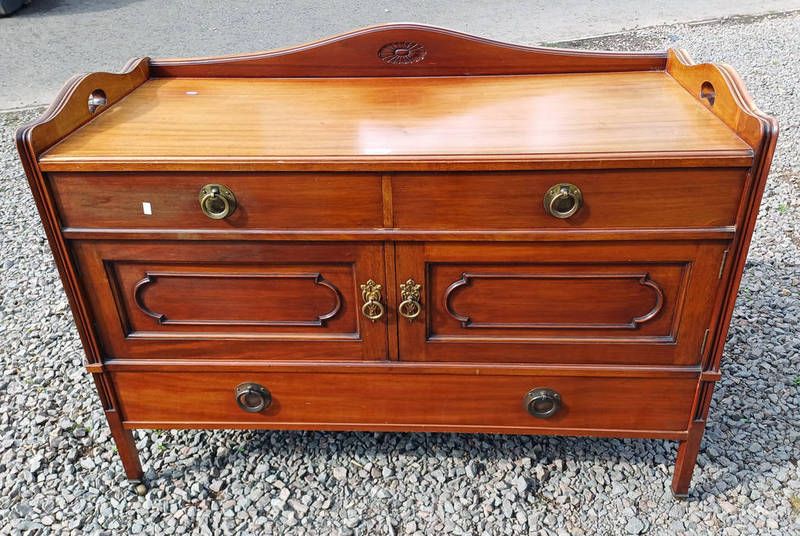Late 19th century mahogany washstand with 3/4 gallery top & 2 short drawers over 2 panel doors with single long drawer below on square tapered supports - 115 cm wide