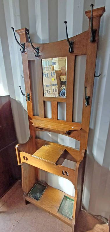Early 20th century oak mirror back hallstand - 188 cm tall