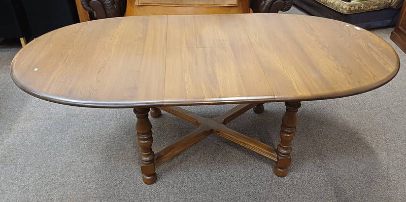 Ercol elm extending dining table with fold out centre leaf - extended 210 cm