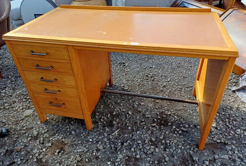 Early 20th century oak desk with inset top & 5 drawers - 125 cm long