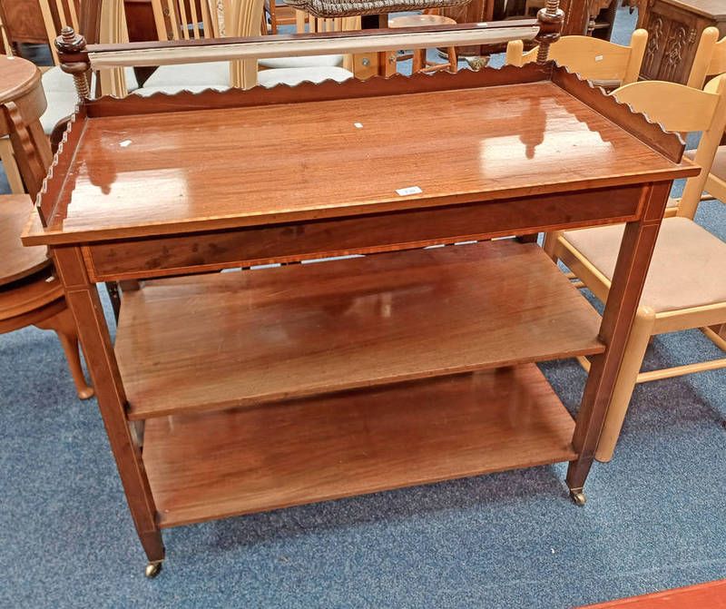 Late 19th century inlaid mahogany 3 tier buffet with 3/4 gallery top on square tapered supports - 121 cm tall