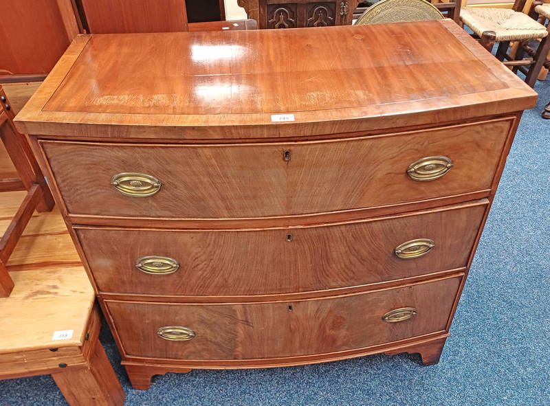 Late 19th century walnut bow front chest of 3 graduated drawers - 84 cm tall x 90 cm wide